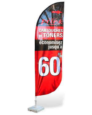Des voiles publicitaires personnalisées de stype beachflag de toutes tailles pour faire la publicité avec une grande visibilité aux abords de votre établissement.