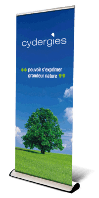 Pour votre communication événementielle : une large gamme de dérouleur, présentoir fixe, support d'affiches, dérouleur roll-up, mât porte-drapeau, chevalet de trottoir ou stop-trottoir (sans impression).