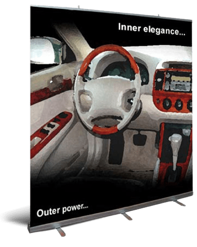 - Présentoirs fixes : affiches, toiles ou bâches tendues.